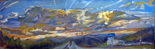Truck Stop Clouds 11" x 20 " Oil on Panel 2015.Available. |